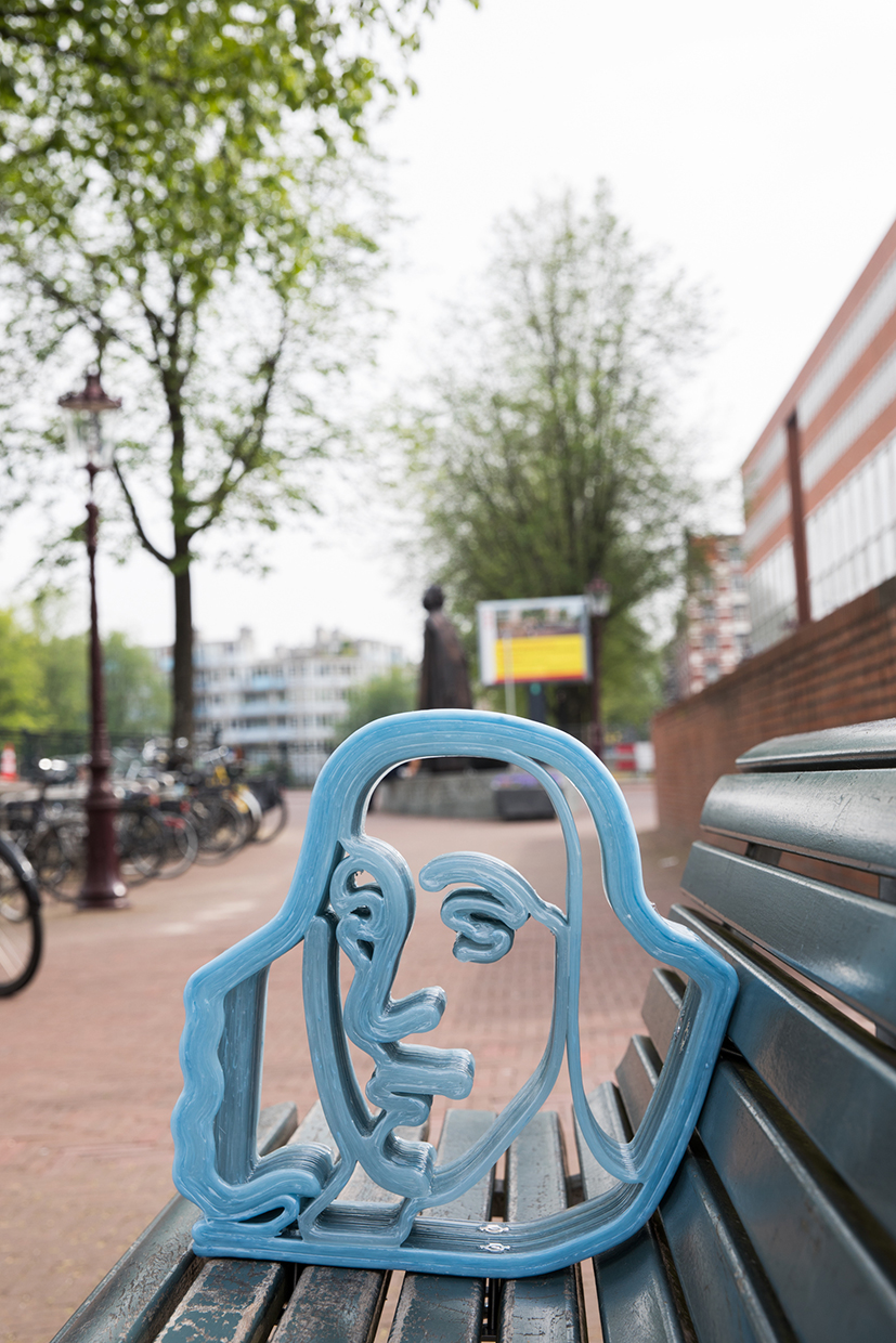 Dat nadenken doe je op speciale banken langs de route. Je treft daar een leuning aan in de vorm van het dier of de plant waar Artis over vertelt. Ze worden op de bank en in de mensenwereld geplaatst. Horen ze bij de mens? En de mens bij hen? Of niet? De leuningen zijn gemaakt van recycled afvalplastic.